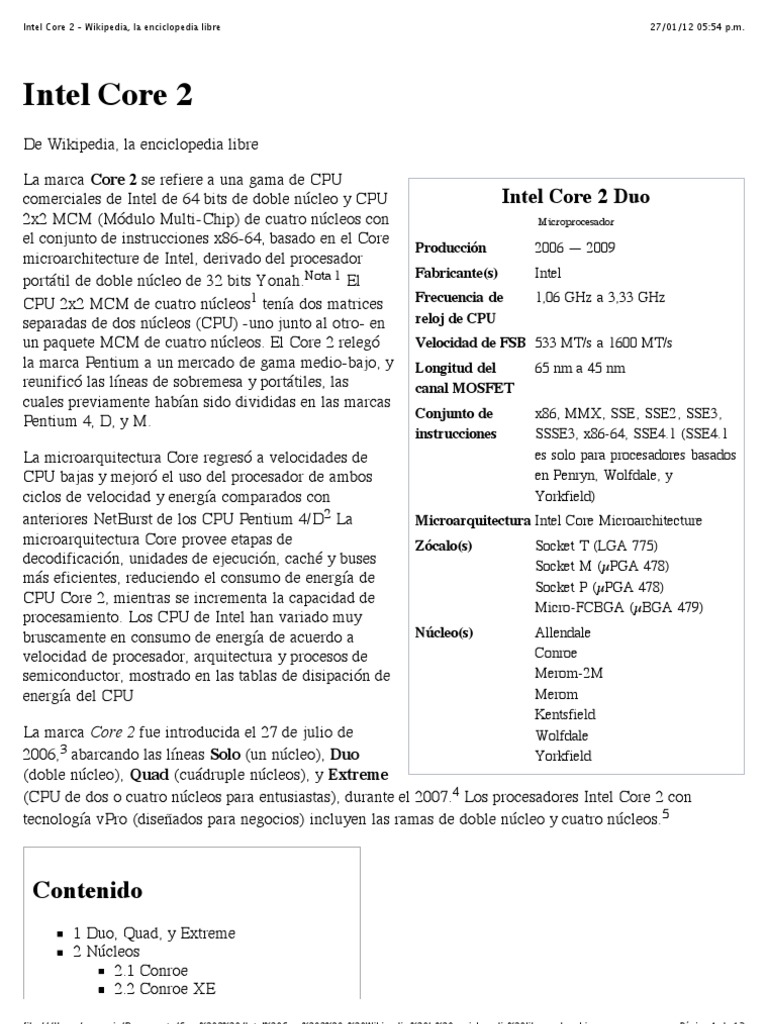 Intel Core 2 Wikipedia La Enciclopedia Libre Hardware De La Computadora Ingenieria Informatica